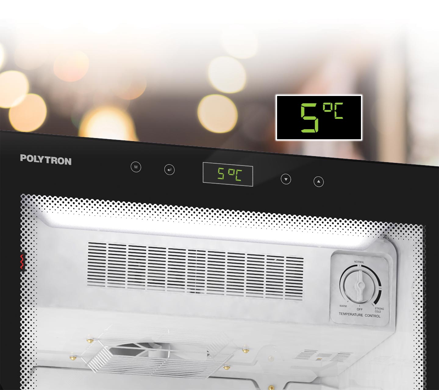 Showcase dirancang dengan pendinginan stabil yang biasanya berkisar antara 0–10°C, cukup untuk menjaga minuman tetap segar. Pendinginnya lebih cepat pulih ketika pintu dibuka karena pintu kaca showcase sering kali dibuka-tutup oleh konsumen.